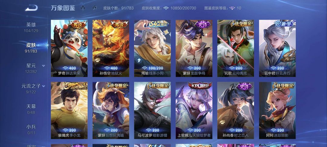 【V9 427皮】428皮 诸葛猴子夏侯惇典藏➕耀无双➕暃珍品➕马克珍品➕各种传说年限