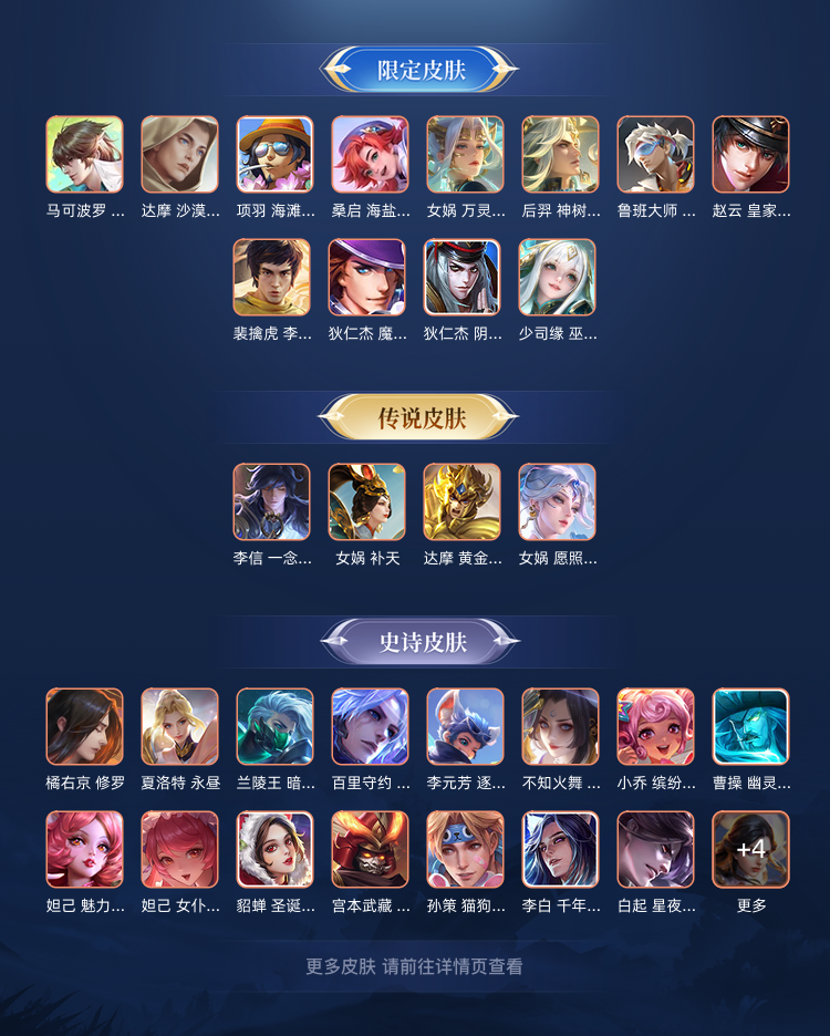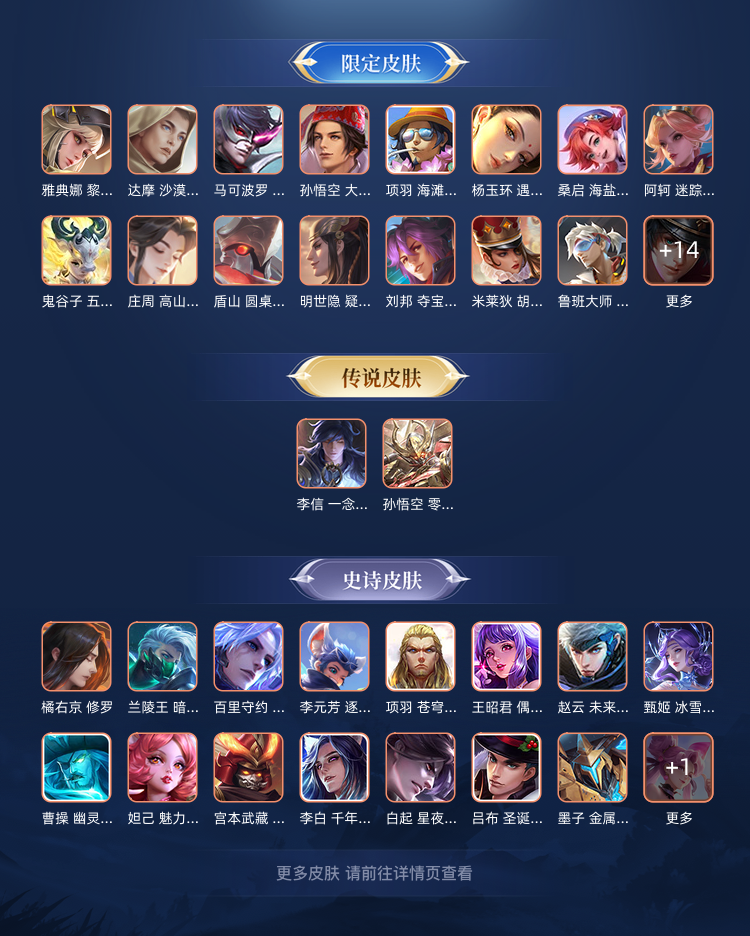 虞姬蛇年,老虎虎年,镜赤阳神光,公孙丽机甲,嫦娥传说,还有一些限定皮肤