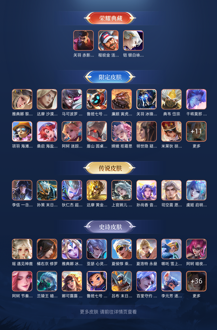 【V4 116皮】|荣耀典藏:1|内测皮肤:1|贵族等级:4|限定皮肤:36|史诗皮肤:19| 小国:1| 贵族4级
