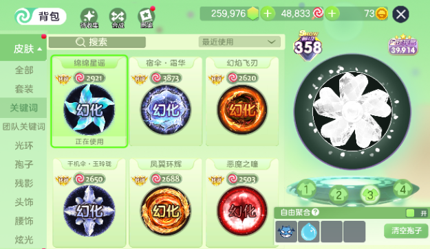 静谧空间*新品皮肤幻化号时空+虫洞【幻化国服14名白花+白色恶魔之瞳+青龙宿伞+满千机伞粉幻化+飞刃