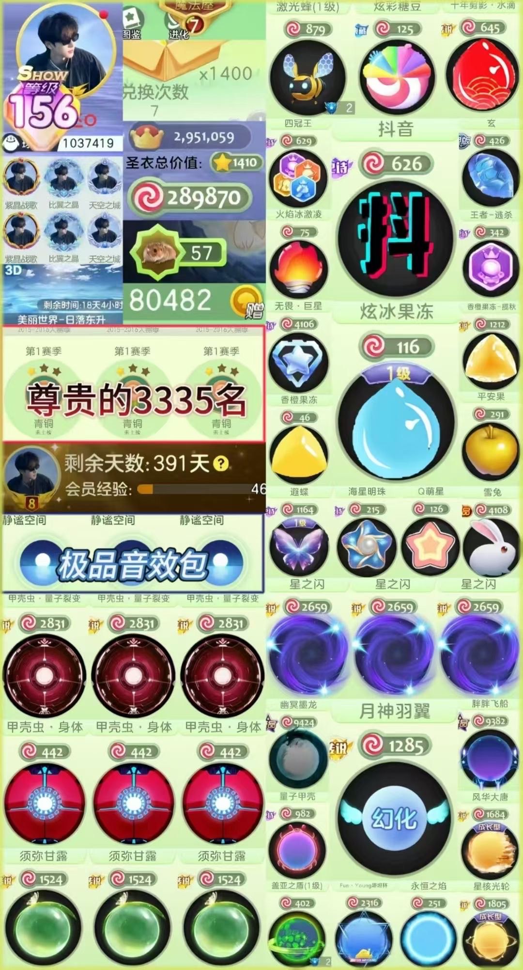 主播号⭐3335千排名⭐满赛季⭐静谧空间音效⭐经典甲壳虫量子裂变甲壳虫⭐抖音袍子年卡会员