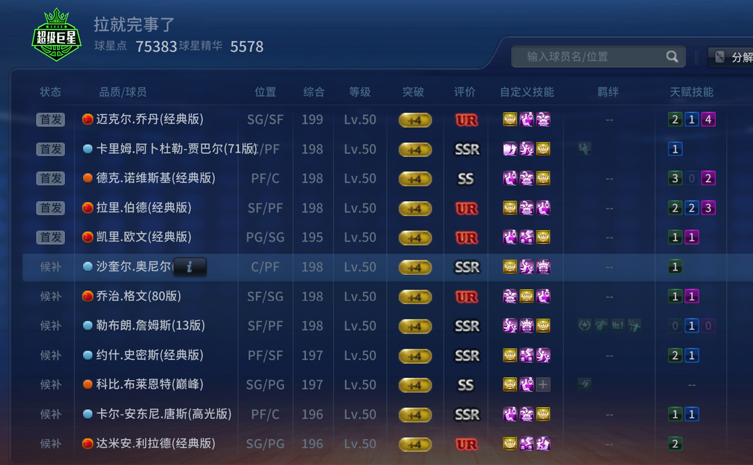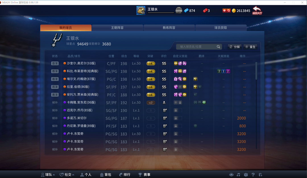经典科比ss 87魔ss 93奥尼尔ss 技能齐全