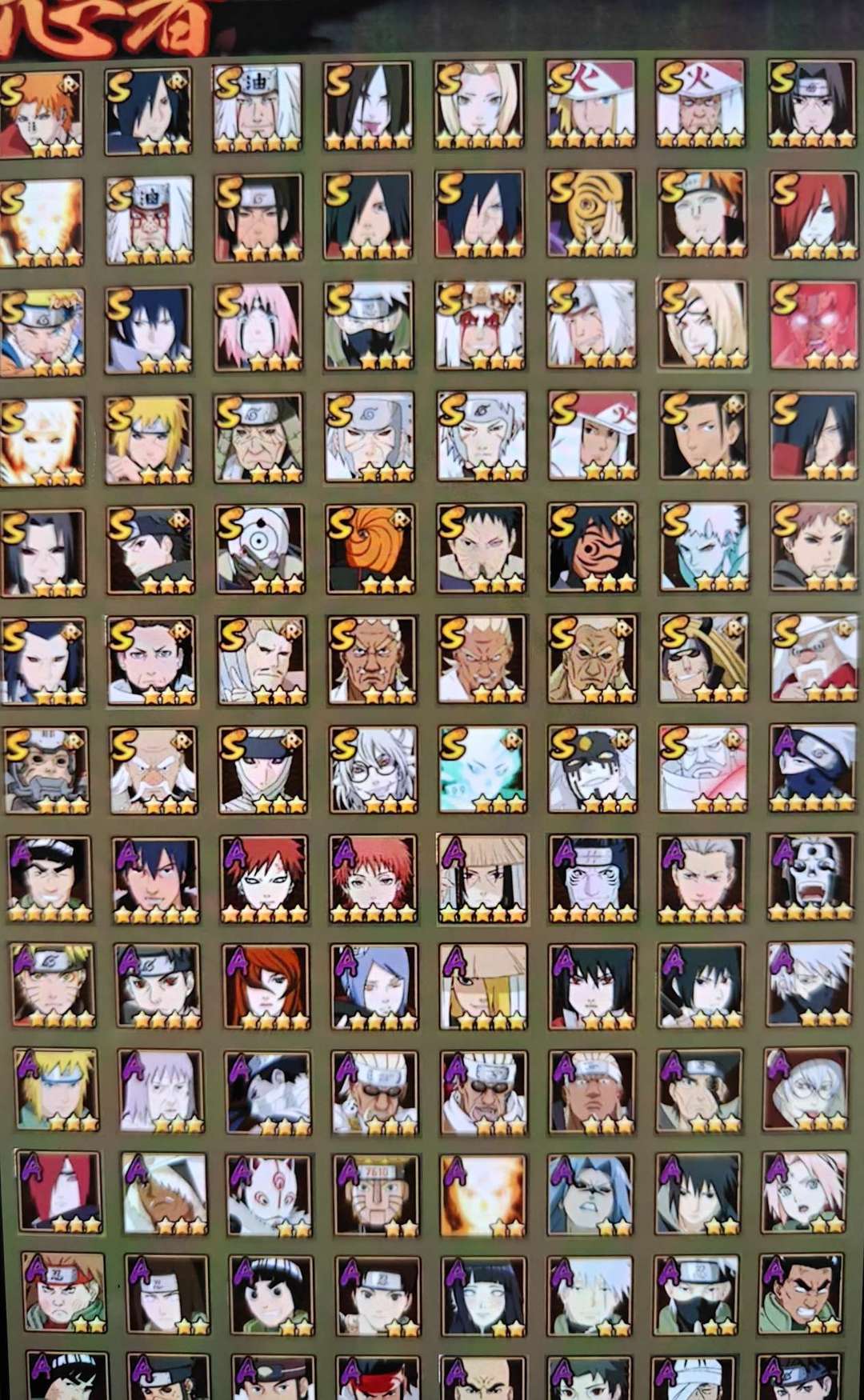 十尾带土已秒,28个S,40个A,三忍自来也,天道超,毅力凯,疾风咒印佐助,须佐卡卡西
