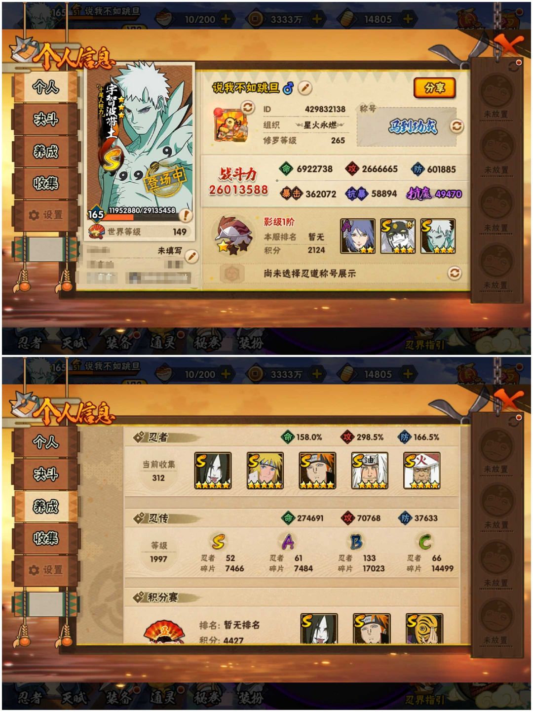 33S❤️1500万战迪达拉已秒♊️神驹阿斯玛小南全套❤️五影会谈斑♊️巳月❤️九喇嘛水门