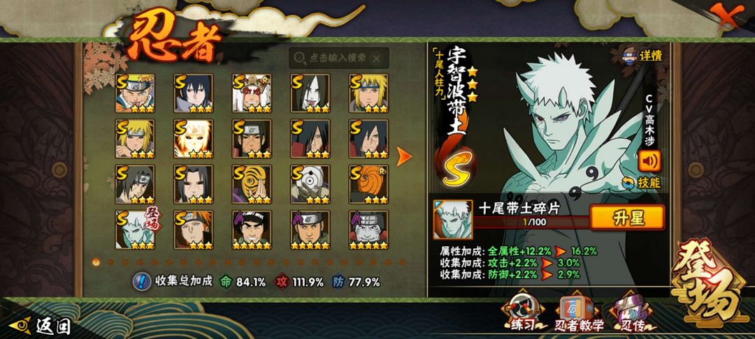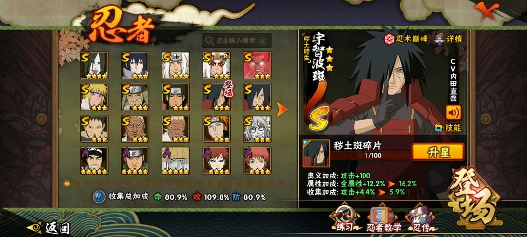 拥有大多数主流s忍。超哥,六道带土,九喇嘛连结,秽土转生柱间,死三代