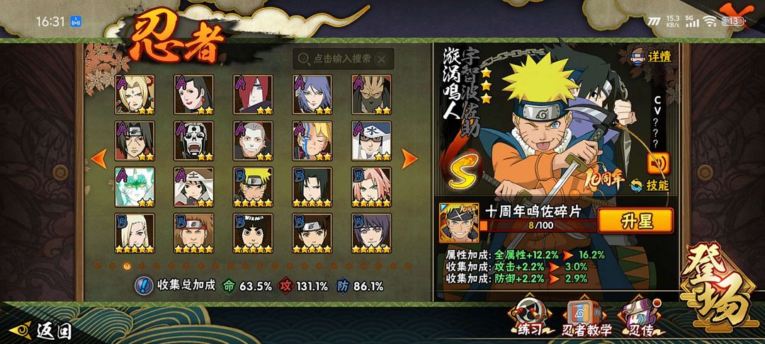 33个S忍者,58个A忍者,大量点卷A和忍法帖角色