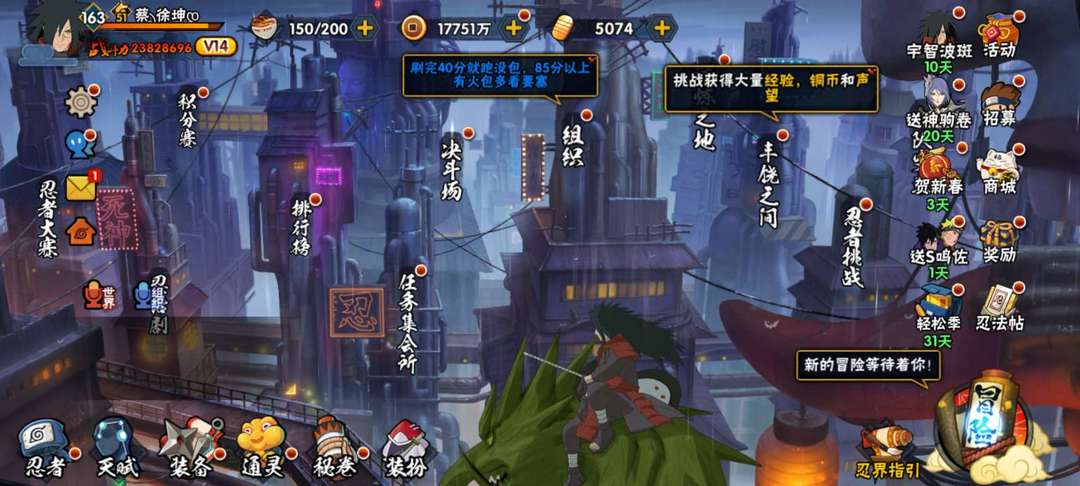 福瑞阿斯玛✨宇智波斑神驹佐将✨四千万✨六尾鸣人✨传说三忍自来也✨418全忍者✨77级魅力