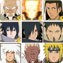 49S♋十尾带土♋九喇嘛水门♋传说三忍自来也♋须佐卡卡西♋须佐止水♋秽土解斑创立柱间♋万花筒佐助