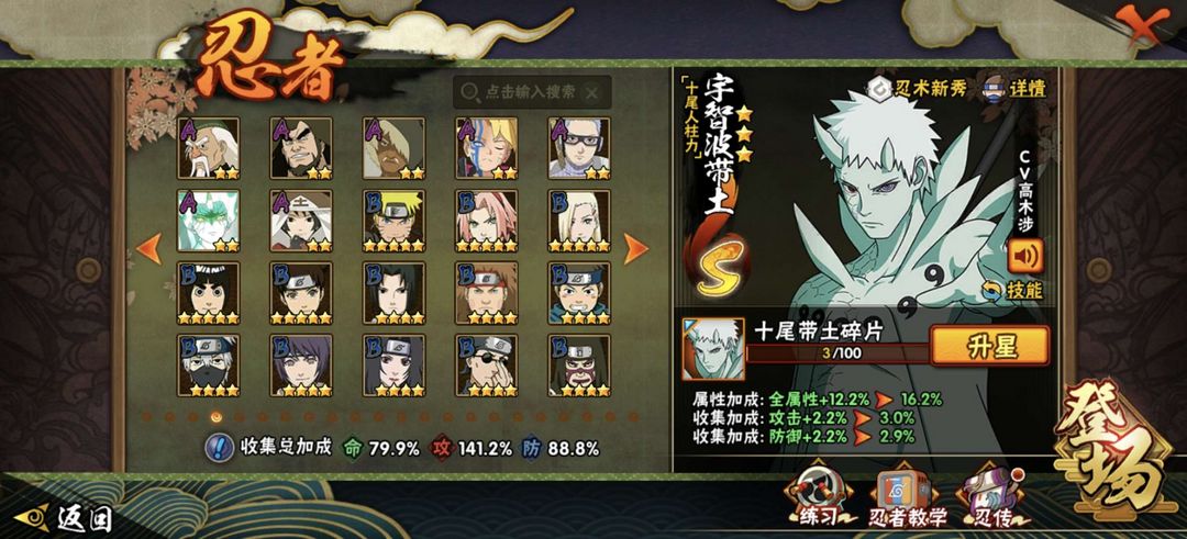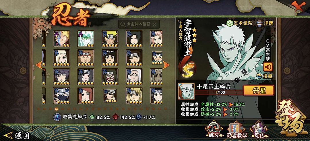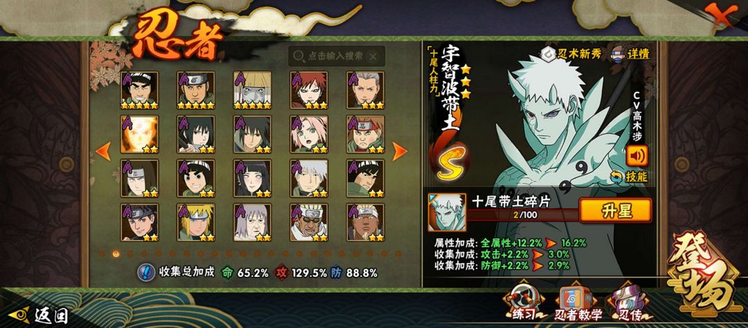 12s❤️九喇嘛❤️死门凯❤️创立斑❤️忍战大野木❤️死斑❤️死三代❤️活水门❤️高招A几乎都有