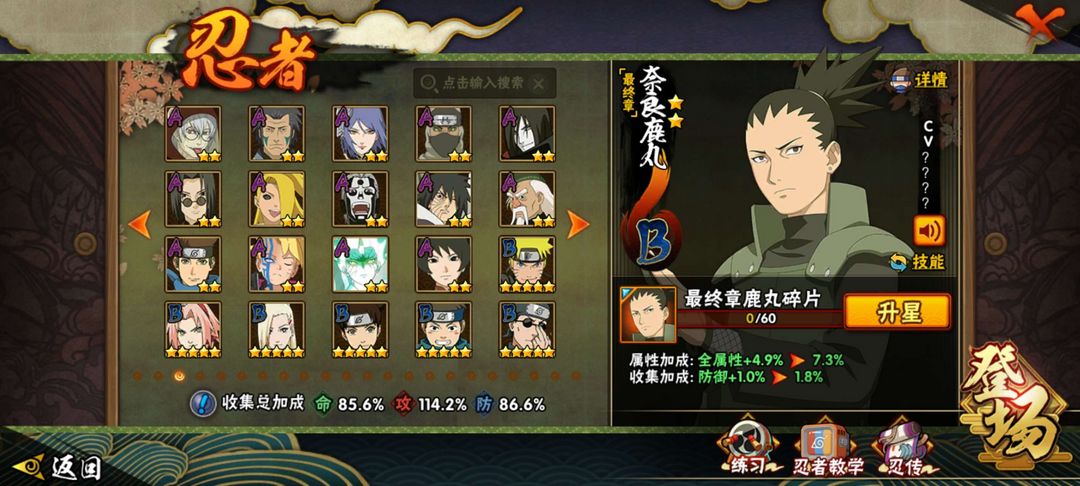 40+S✨60+A✨300+忍✨漂泊扉间✨漂南✨盾狗✨新罗✨黑绝✨侠佐等热门忍者 新高招已秒出