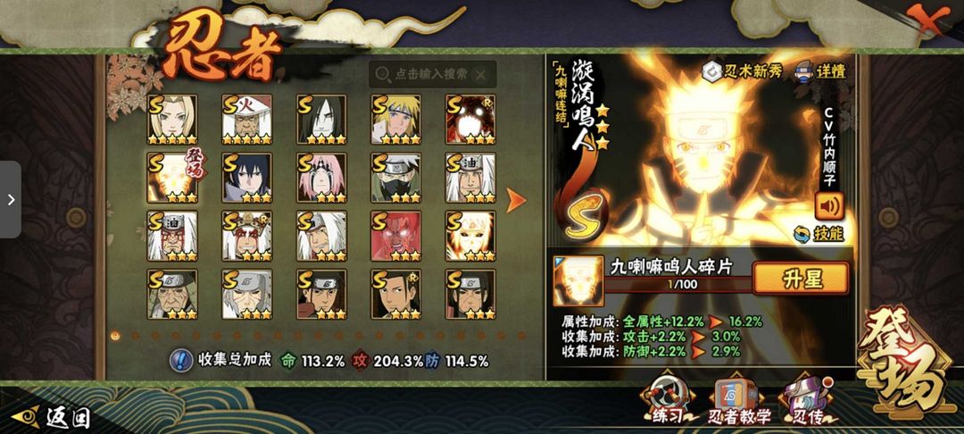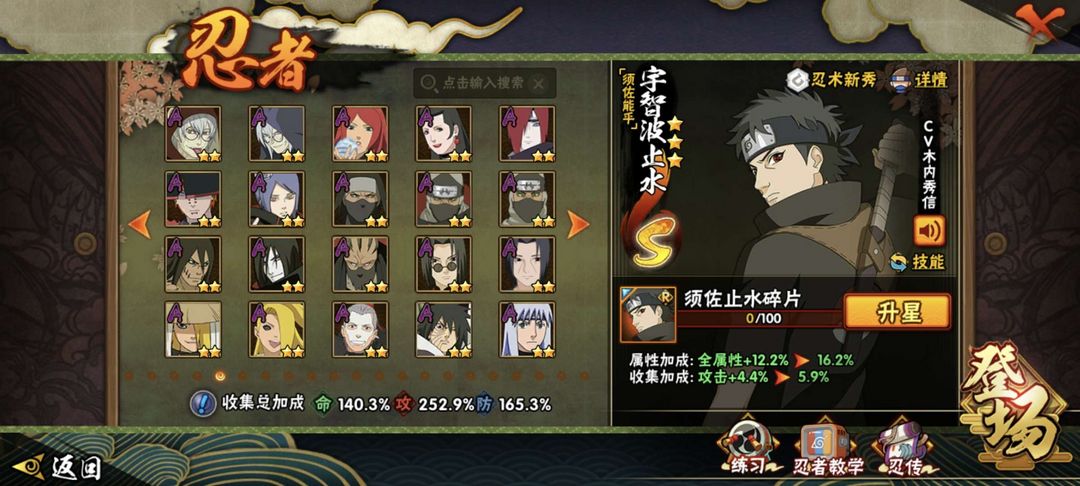 10s 27a 忍战艾 白面具(忍者不多但是有的忍者强度不会差)