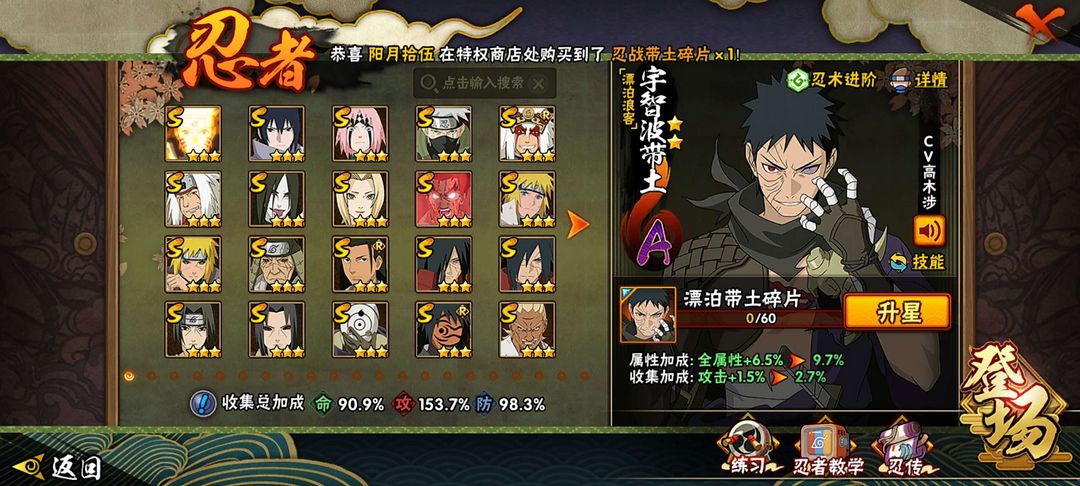 忍战带土 黄猿 紫狗 植物人 白面具 忍战卡卡西 五灵王 秽土鼬 11s 等强力a和s