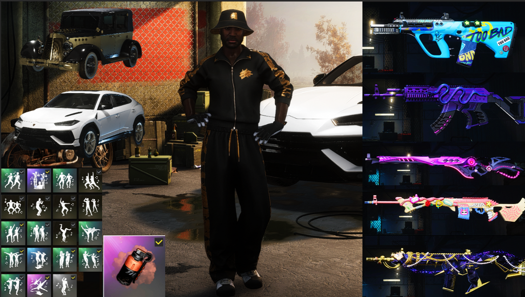 【8神器】满马丁跑车满兰博有车展大厅✨满级霓虹AUG✨赛搏危机MK12✨异色猪八戒M4✨妖魔之触AC
