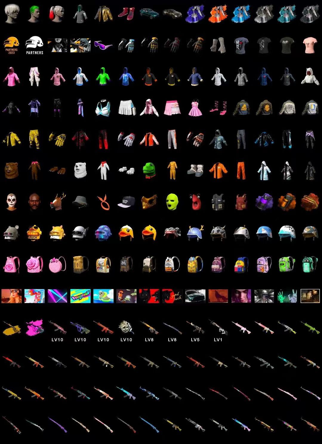⑧神器双满✅⑩级火麒麟⑩级朱雀齿轮炮悟空彩烟✅小黑盒手✅迈凯伦✅金柏林裤✅拉风龙黑鬼金面手滑雪套衣柜