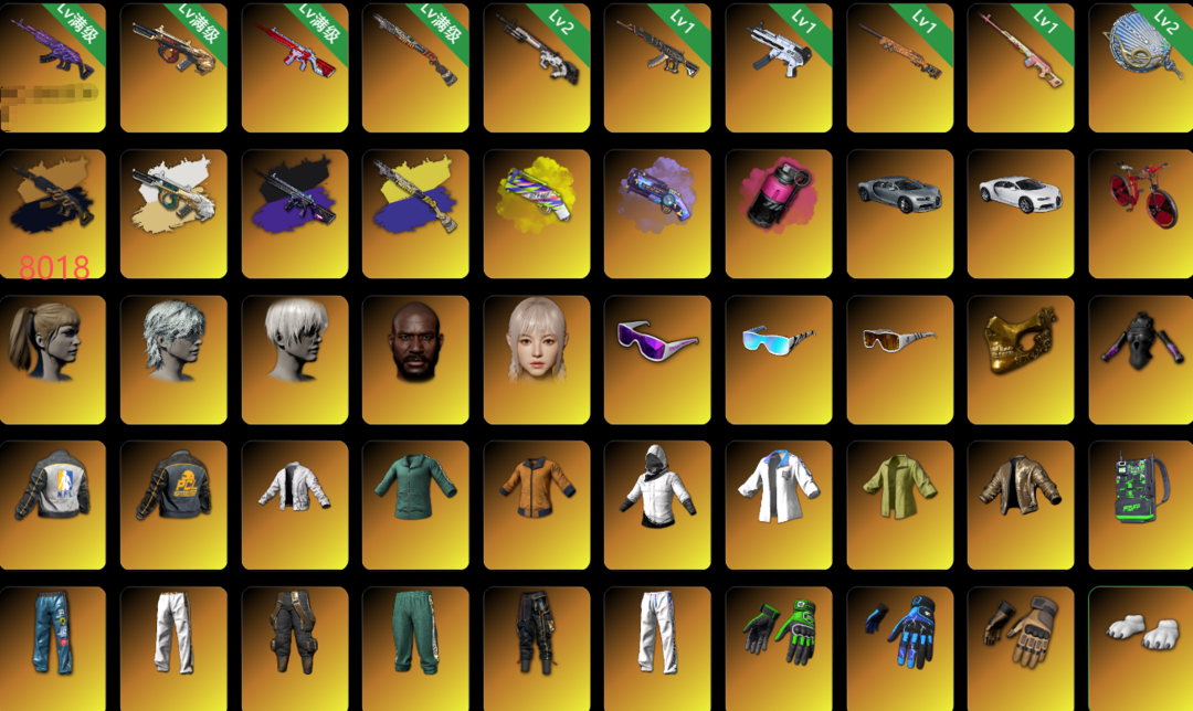 二级密码看描述✓阿斯顿马丁跑车✔️4级悟空✔️6级水麒麟✔️AWM✔️红烟✔️老黑✔️金面✔️悲喜