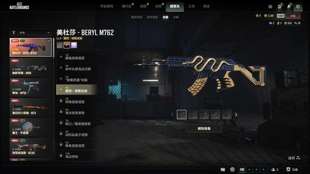 4级新异色黑金美杜莎M762✨PNC完美98K唐三藏SLR沙悟净AUG科技MP5KSKS