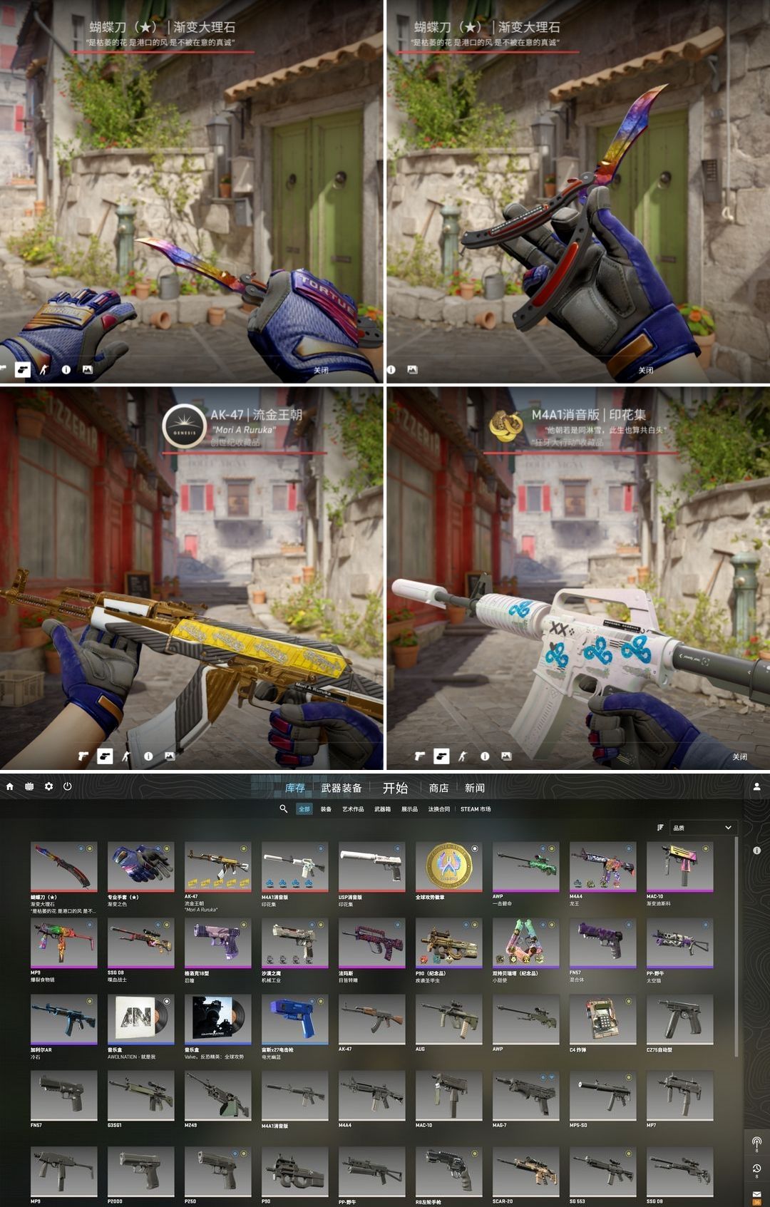 完美❤略磨 弹弓❤套印❤渐变蝴蝶❤伽马弯刀❤火蛇❤克拉考awp❤印花集 ❤星尘沙鹰