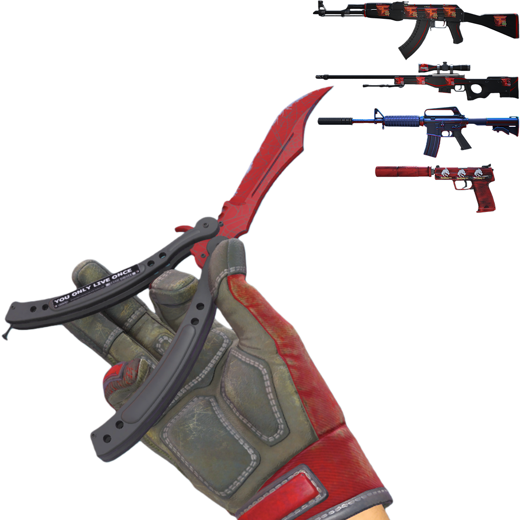 只可5e休闲 猎杀者匕首+暗影双匕+摩托手套+抽象派 1337+炎龙之焰