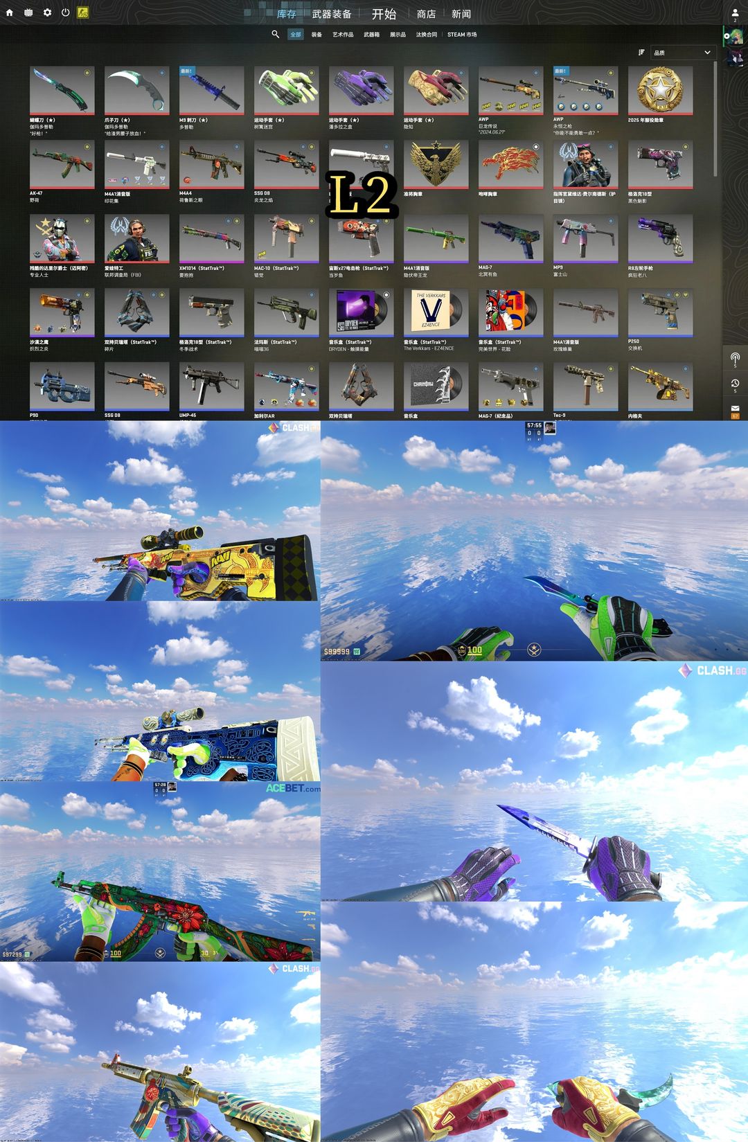 A9可5E授信完美绿色❤伽马蝴蝶❤骷髅手套❤传承,血腥AK,锦虎AWP❤皇帝印花集