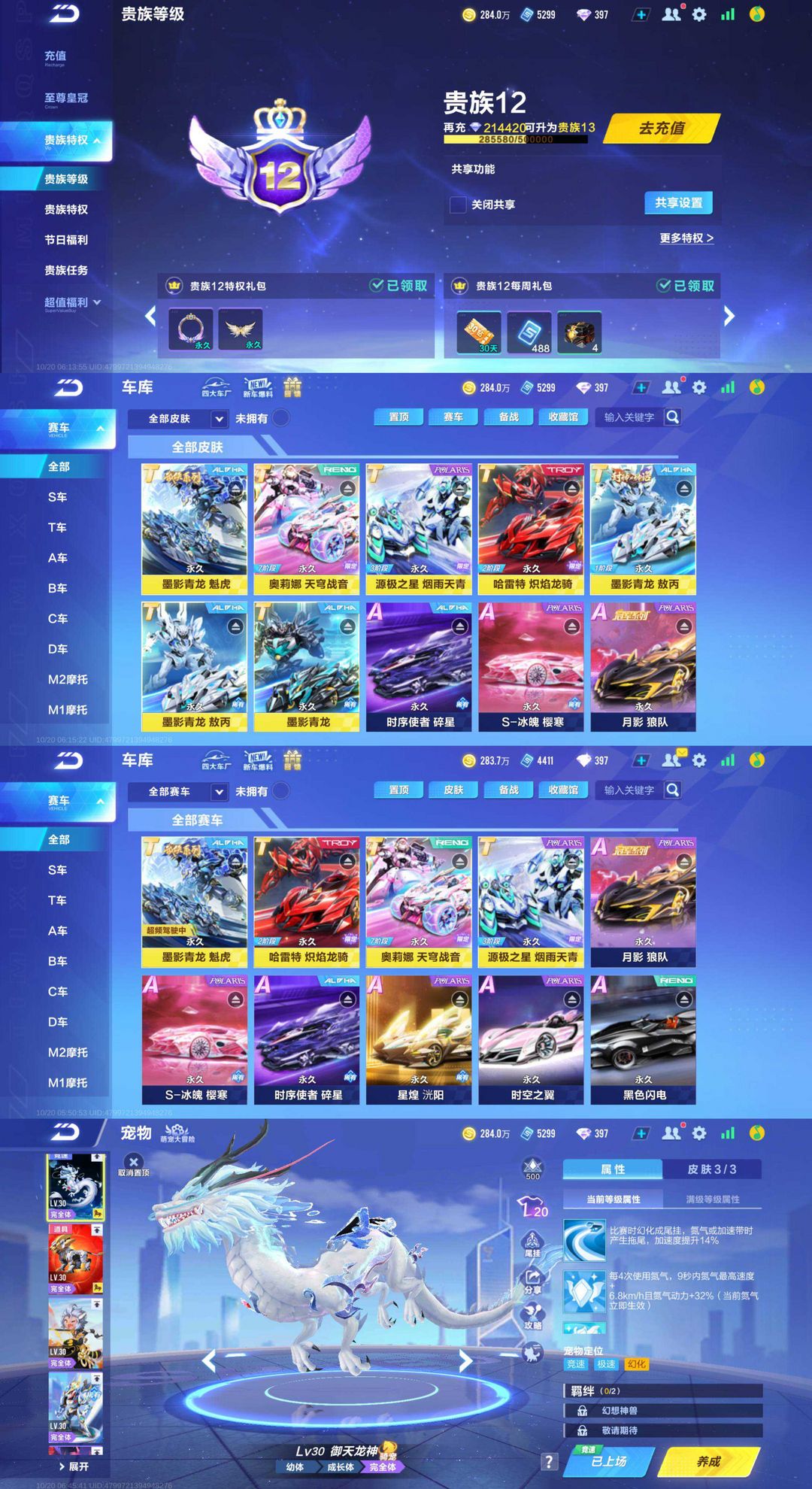 满配3T昭神云逍哈雷特✨骑宠御天龙神✨5阶冰魄幻星天行者✨鎏龙神音魔法套✨奇喵密语社交底板⭐鸭宝超人