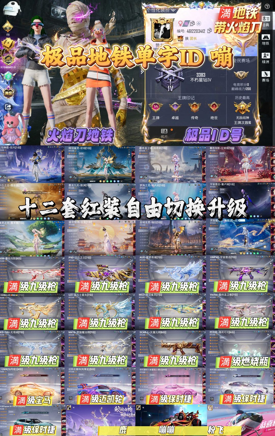 12粉装➕7粉枪➕5载具❤️极品素材➕男神身法号❤️