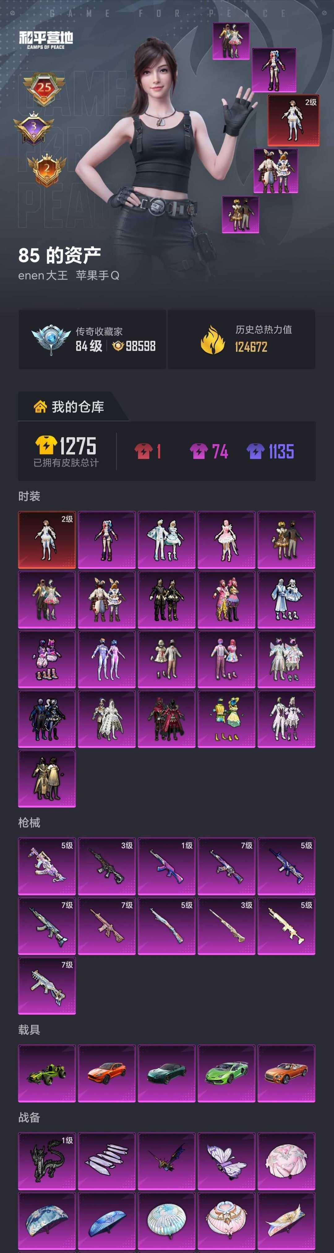 5个战神框/满级女娲枪皮18特效枪皮/红装云鸾/S1赛事衣巡查衣樱桃新1014载具宝马水晶马开挂起诉