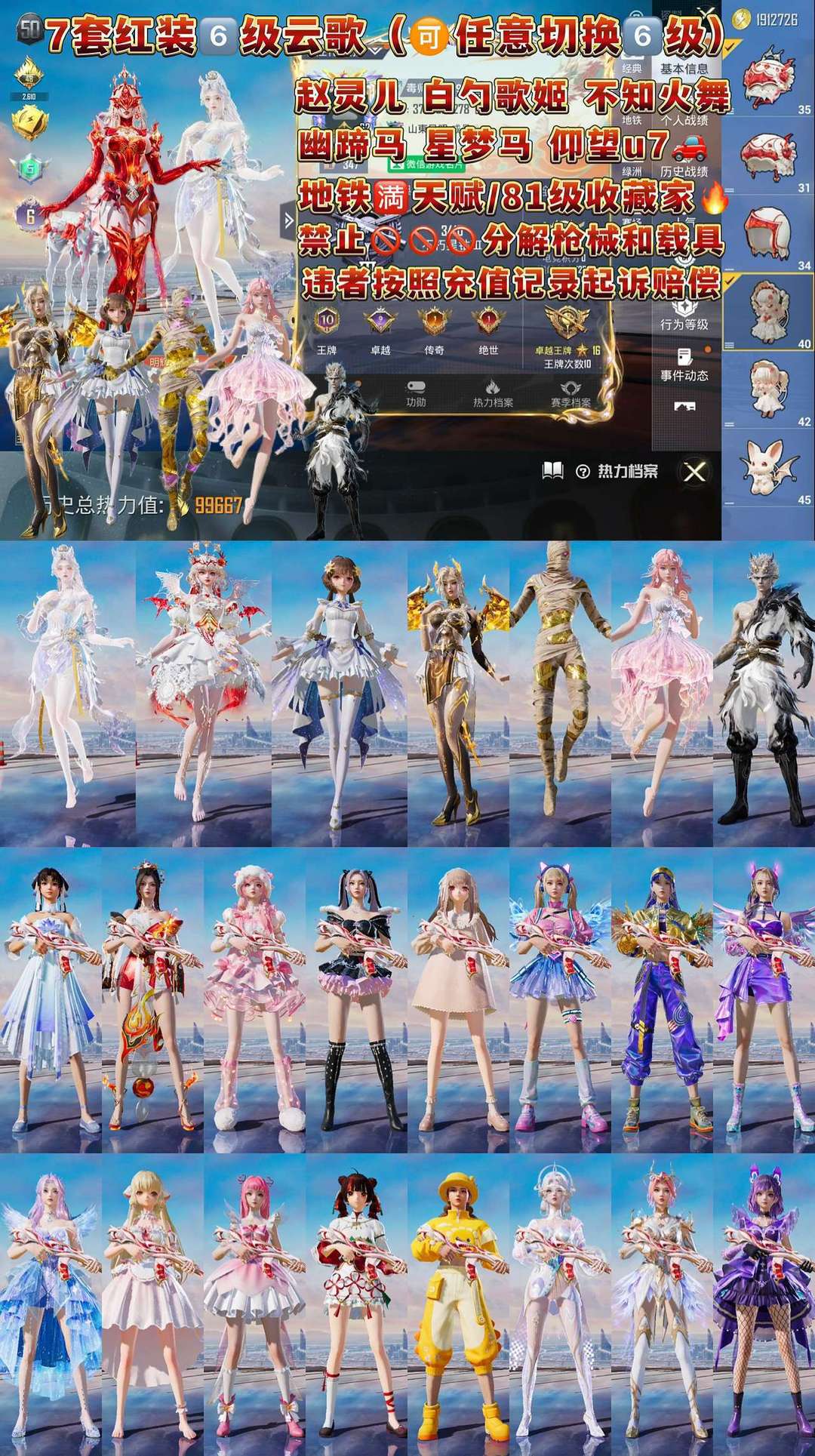 顶级满级圣域龙灵瑞拉龙妈⚡️三辆满级宝马⚡️满级迈凯轮F8满级m4女娲灵识AUG星梦奇缘樱桃泡泡