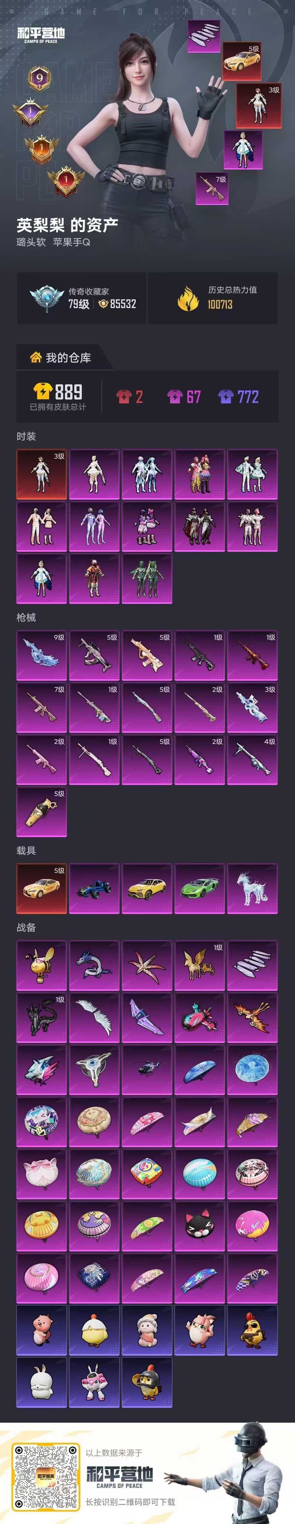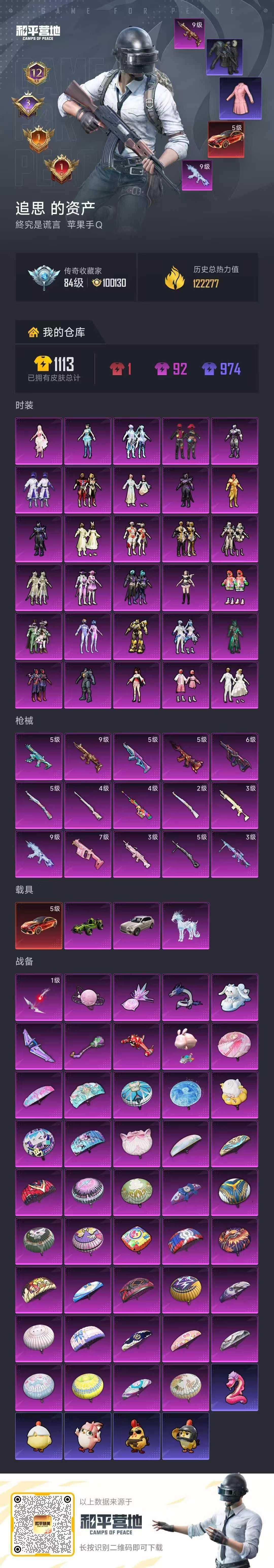 (新红装2套已拿)神装齐20套(满级)/老101/66粉/34载具皮/5把9级满级枪