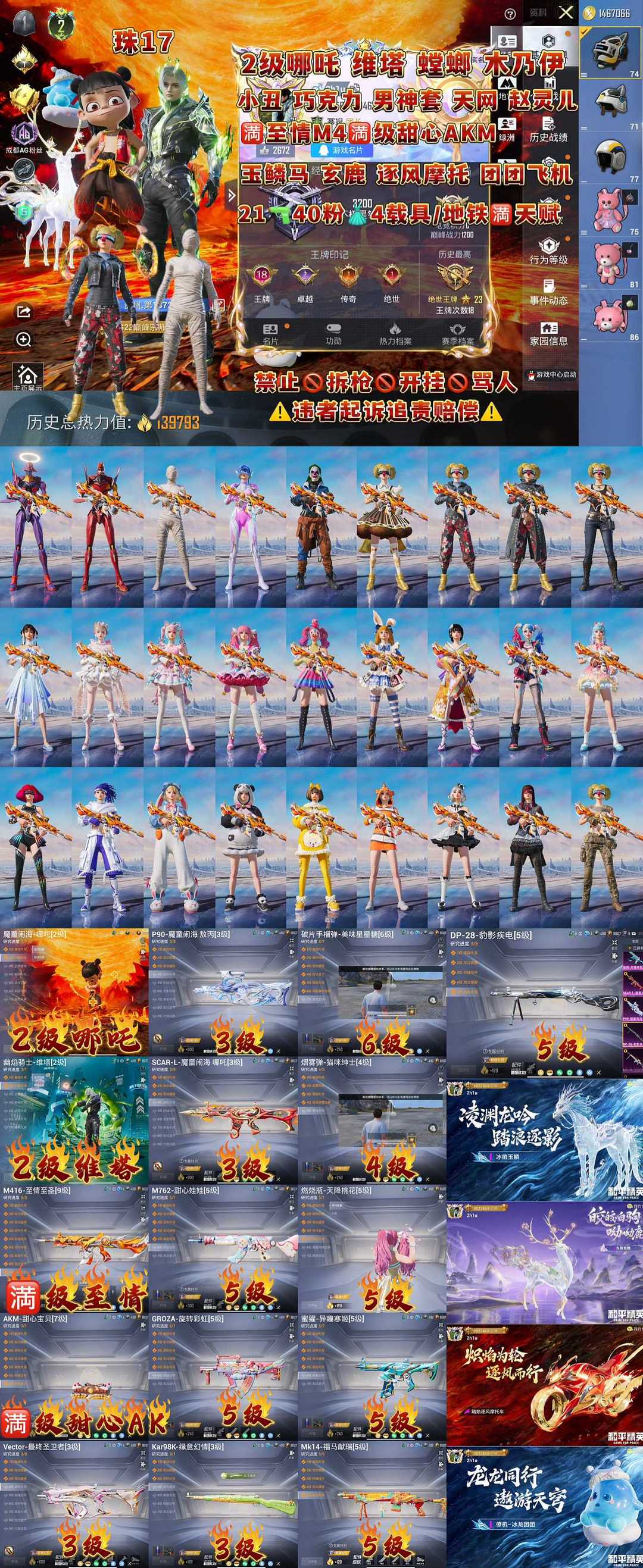 包天男神套2级哪吒维塔40粉21特4载具满级至情m4满级甜心ak螳螂木乃伊小丑天网巧克力赵灵儿