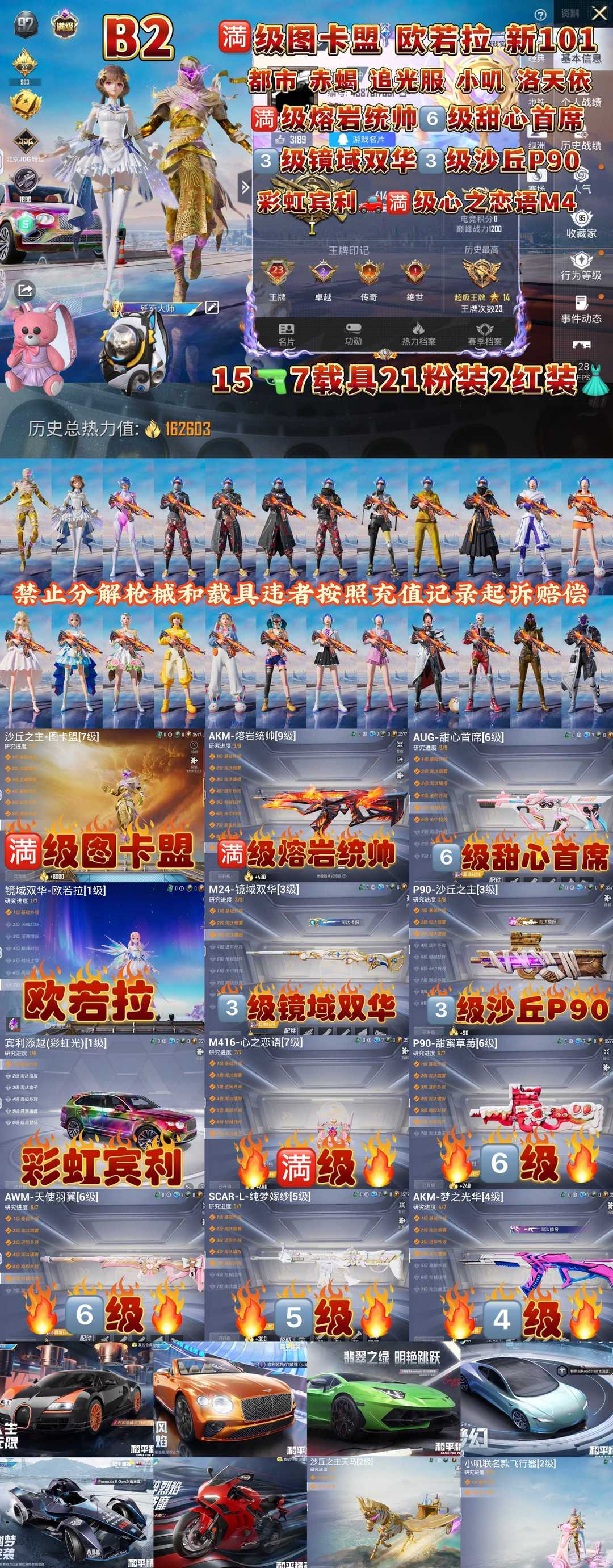 23印记满级图卡盟满级ak熔岩6级aug甜心15枪7载具21粉装2红欧若拉都市赤蝎极限特训奇异追光服