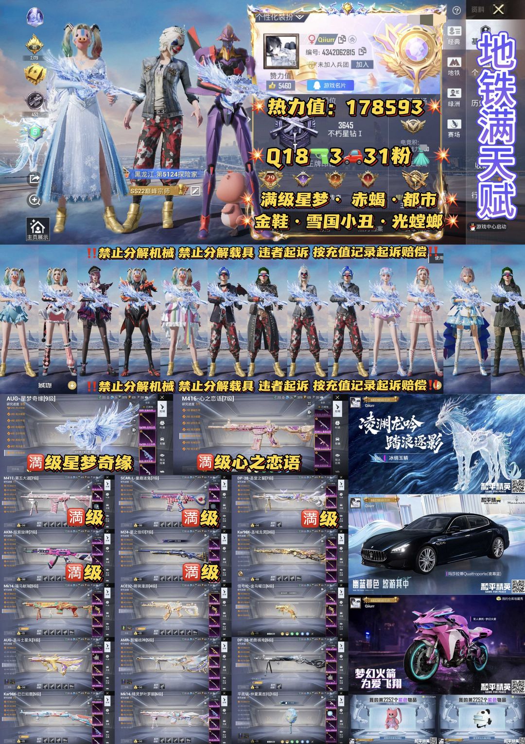 便宜包天苹果区【特效枪:3 粉装:13 载具:2】雪国幻梦相思残雪暗夜鎏金✨满级恐龙拽拽激战未来五爪