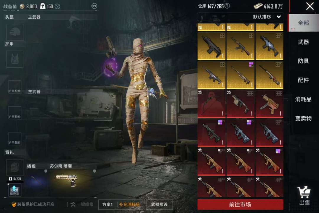 套装、枪皮肤、 头盔皮肤、背包皮肤、降落伞皮肤 都还是挺多的