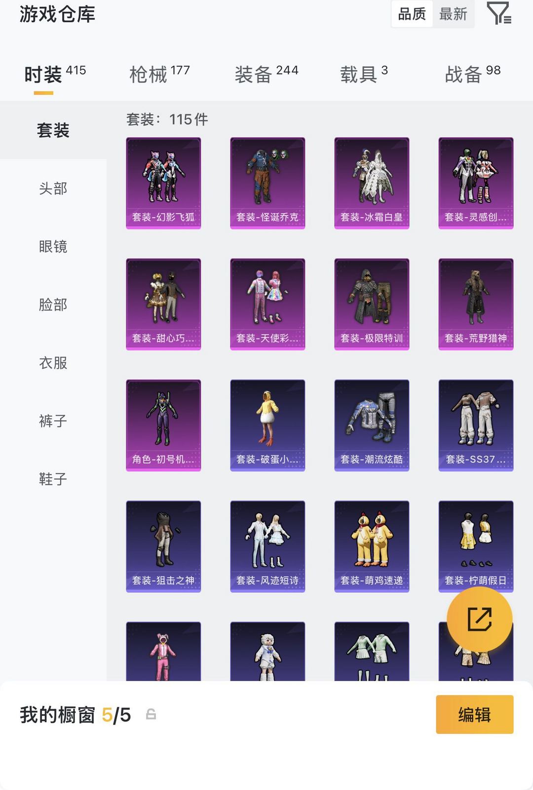 套装、枪皮肤、 头盔皮肤、背包皮肤、降落伞皮肤 都还是挺多的