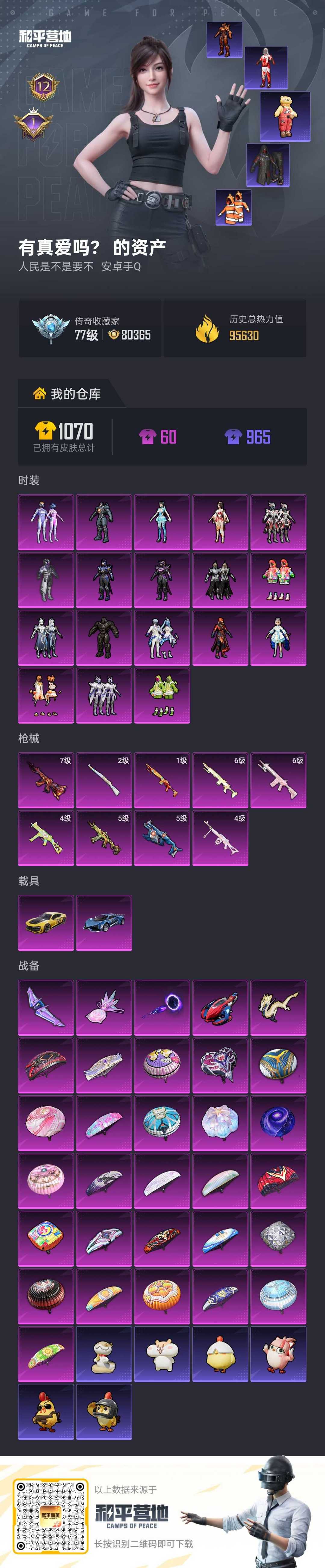 【291时装44装备58战备42枪械3紫色降落伞】千禧之恋❤️暗夜契约❤️丛林猎人❤️Kar98K