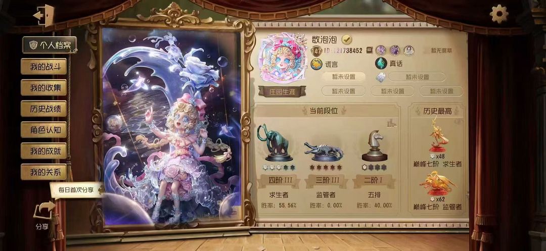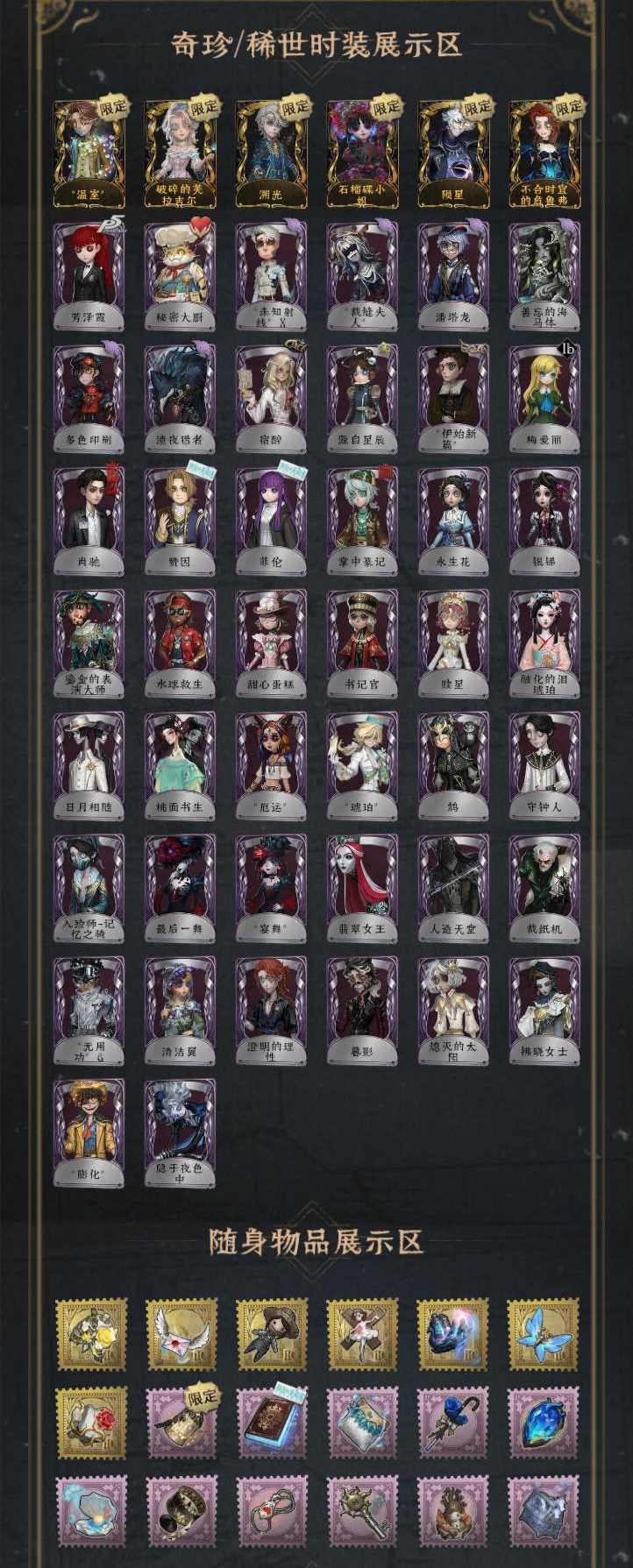 十金渔女瑶彩、囚徒灵犀妙探、入殓师温室、杰克乌骨、调香师聂莫黎、入殓师变彩、红蝶胧夜、杰克年限