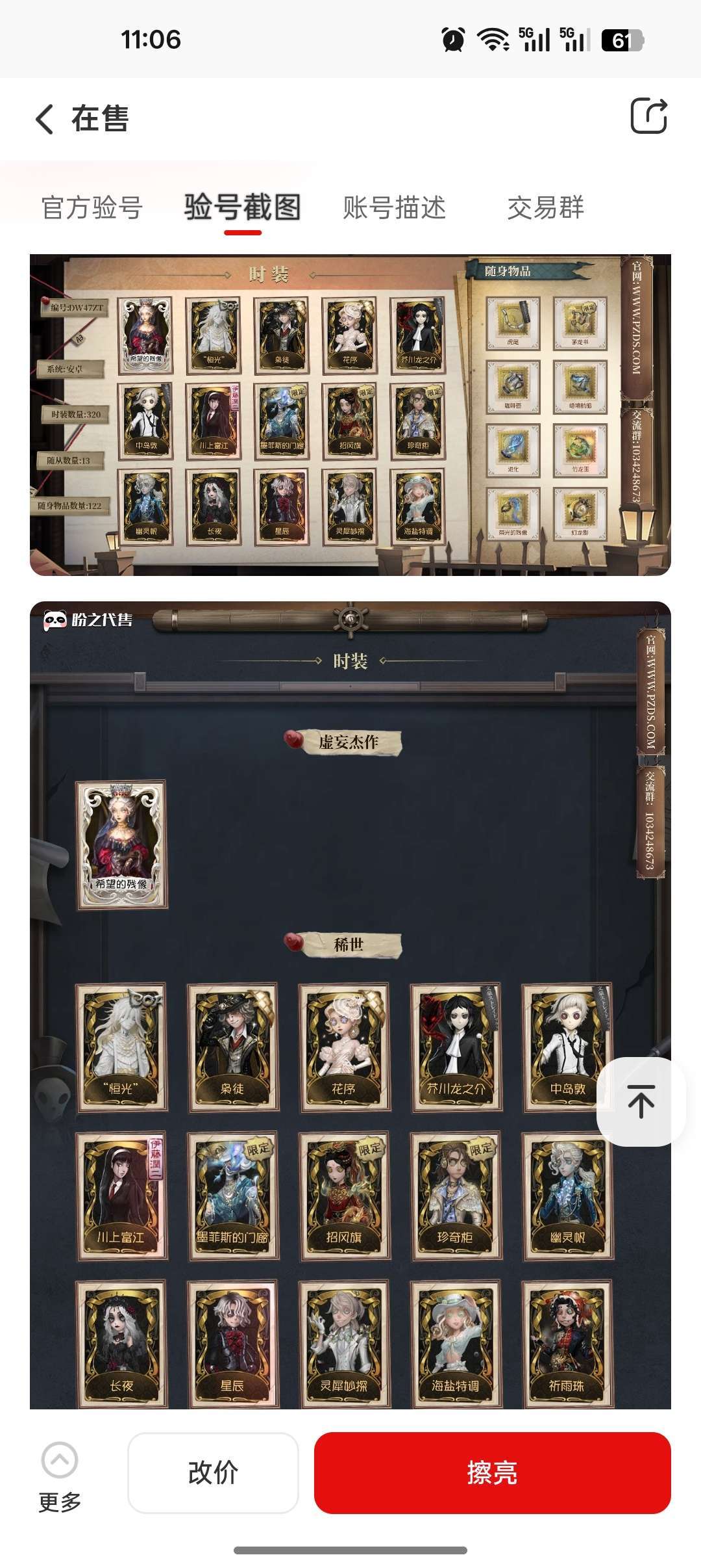 (禁打字禁语音)律师一限,女王蜂一限,隐士二限,隐士金挂,摄影师金挂,律师金挂,杰克金挂,囚徒OPH(无挂件)