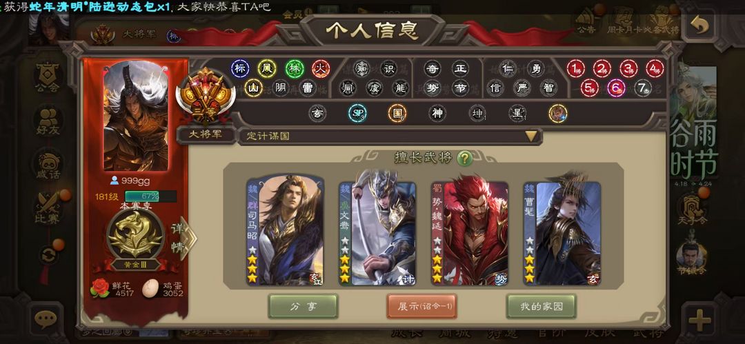 一等大将军☆回廊神郭嘉神甘宁动刘焉动神司马懿界沮授☆谋孙策文鸯动王元姬曹婴马钧动大宝留赞动界左慈杨彪