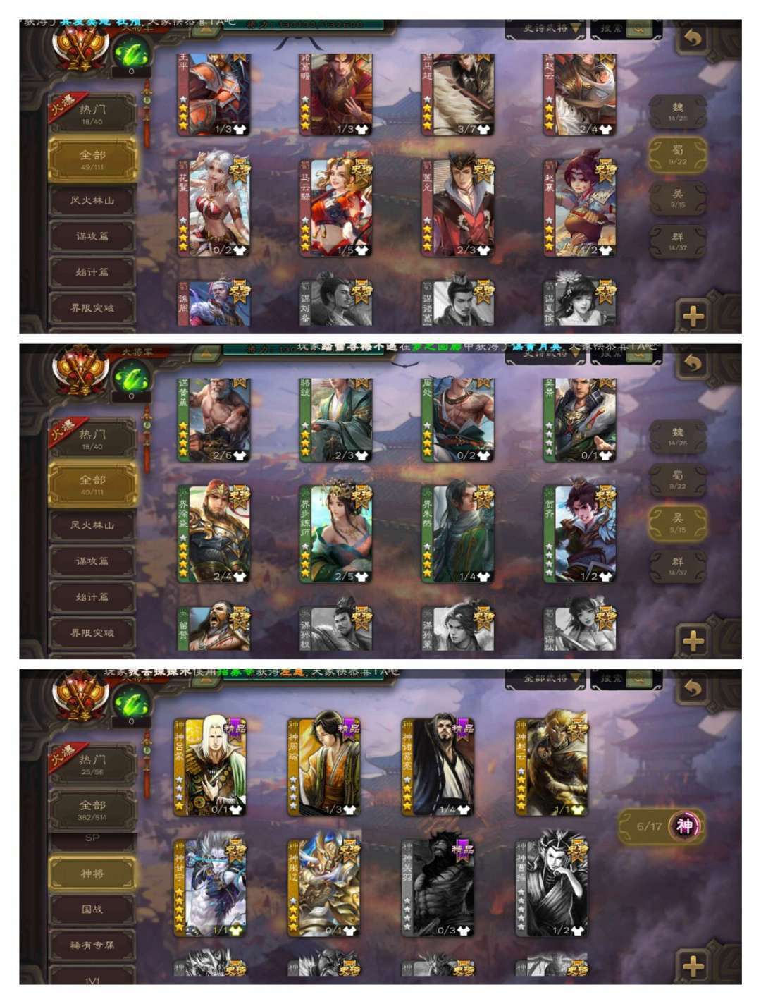 大将军34史文鸯神甘宁界徐盛动态羊徽瑜神吕布界钟会曹颖南华老仙神吕布诗帆游侠星甘宁灵魂留赞沙摩柯等等