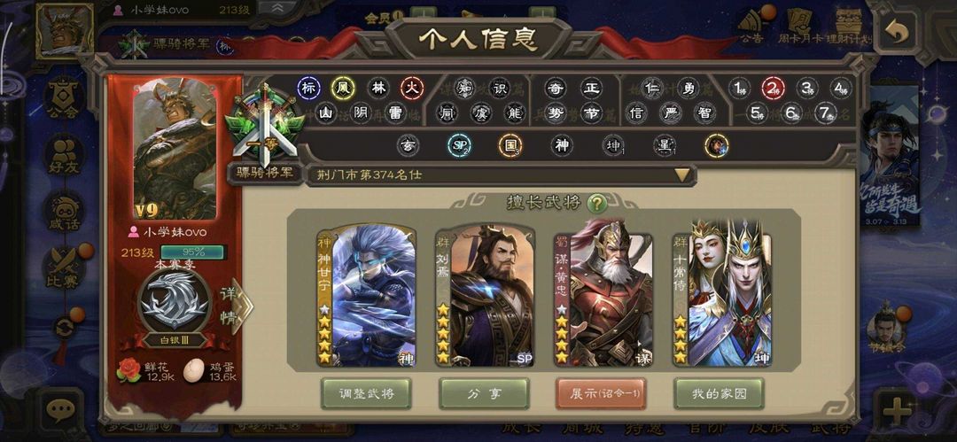 4399版♉有卡♋V9⛎285将♑2等骠骑将军♉13个史诗武将