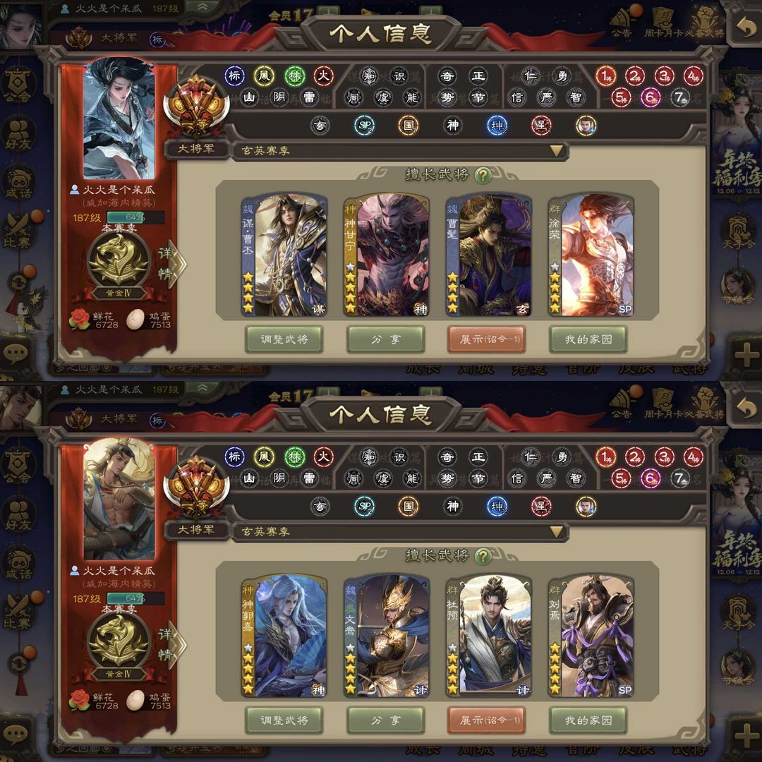 一等大将军◆73SS动神司马懿神甘宁动鲍三娘神郭嘉神曹操刘焉徐荣◆杜预杨彪大宝动王元姬羊徽瑜歌王留赞