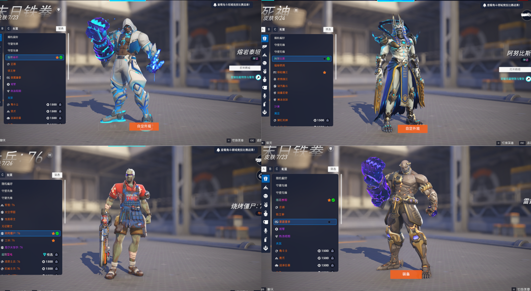 【14神话街霸联动皮肤】守望先锋国服钻石分段金皮四百多个