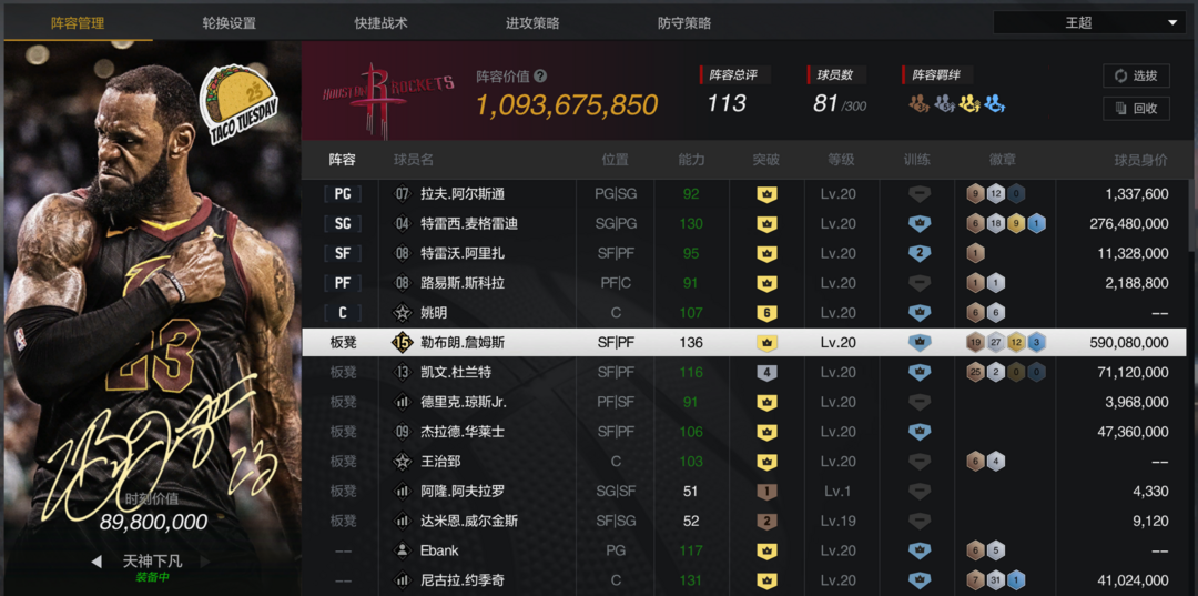 8800万阵容 10突布克乱射,10突杰伦布朗爆射暴扣,10突特纳,满突小波特强力投手