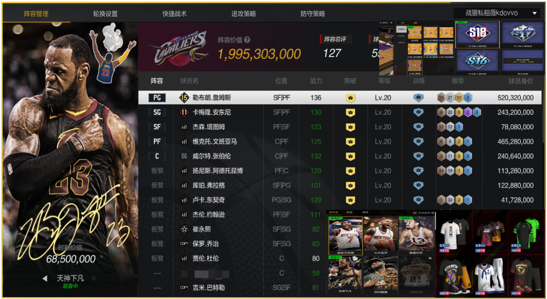 【可排位】【26亿】6突库里双时刻+6乔双时刻+满詹双时刻+满杜双时刻+6魔5鲨5佛