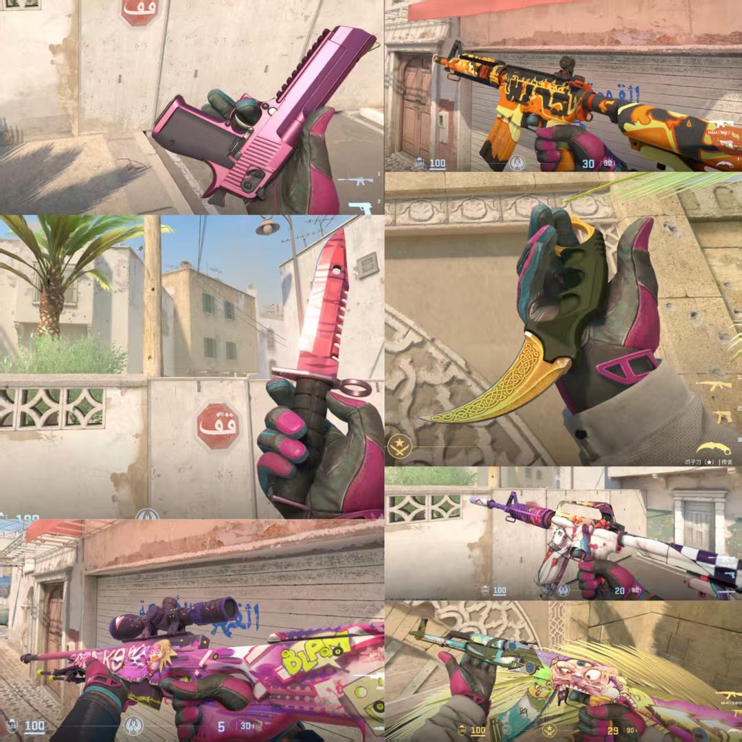 5E完美❤双刀❤传说爪子+屠夫M9✅迈阿密手套✅AK怪兽在B✅克拉考AWP✅蒸汽波A1