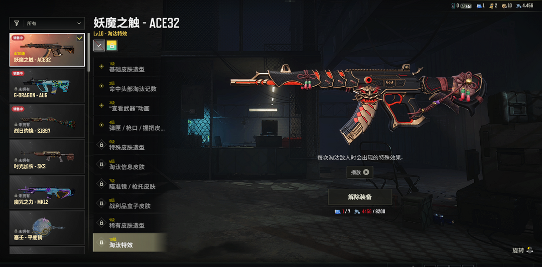 ④级妖魔之触ACE✅暗影缠身AKM✅湮灭M762✅幸运骑士SKS✅六进制mini✅王牌登场SLR✅铃