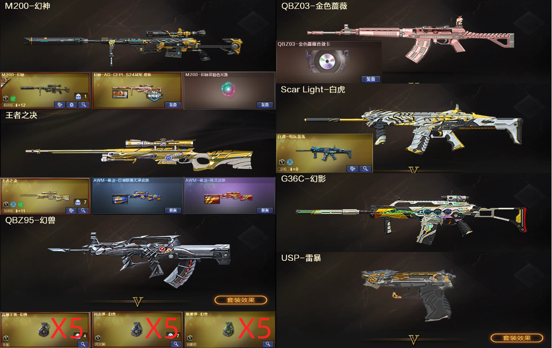 【可排位】幻兽全套5套雷❤幻神新AG光效+王者裁决❤QBZ蔷薇音效卡+白虎G36C幻影+USP雷暴❤死亡4烈龙