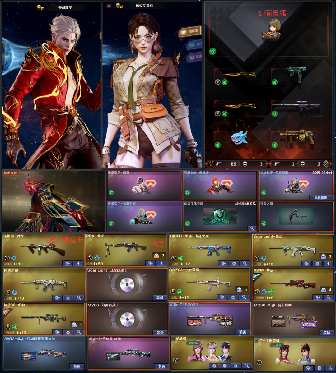 【可排位】神威莲华艾莉莎幻面灵狐②炽芒蝶刃mac鲨鱼5盘6烈镇魔生化四猎皮幻神②皮卡白虎卡②皮裁决