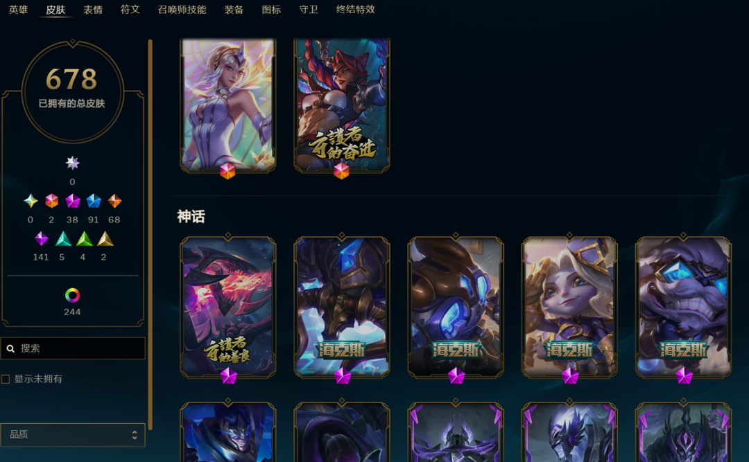 总的678个皮肤 年限 海克斯 至臻皮肤
