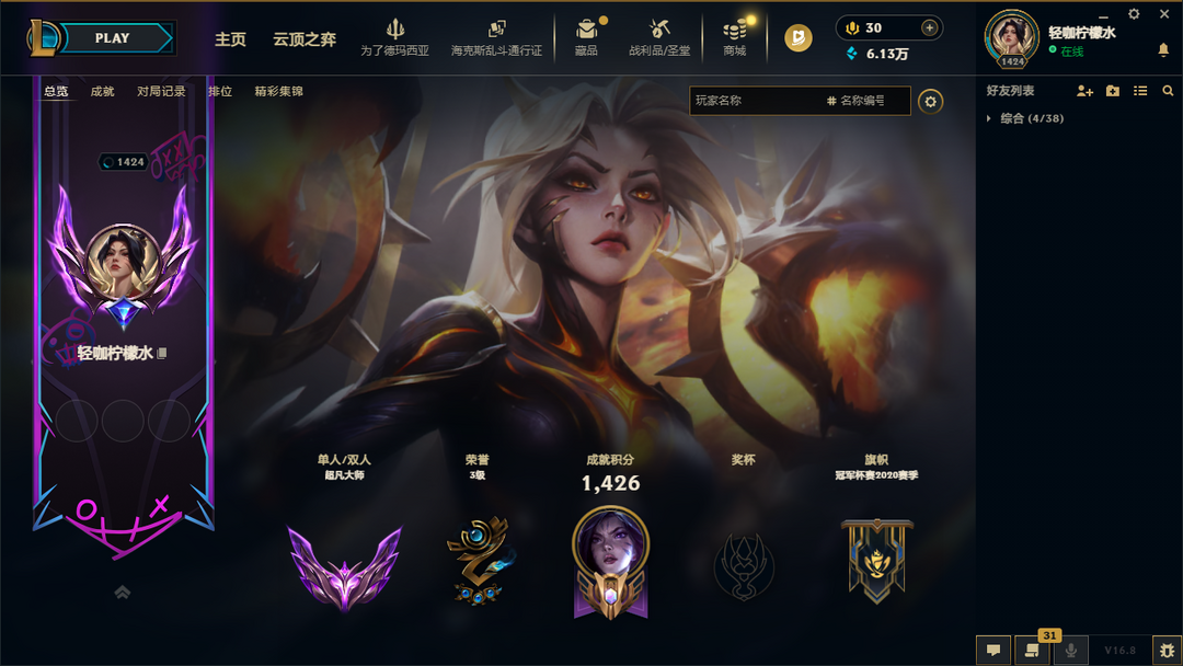 【联盟五区】【S16超凡大师】★2200p★名人堂卡莎★圣堂金克斯★能打字打灵活★无法登录找客服