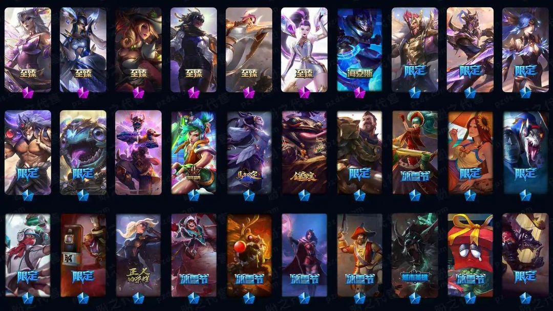 可排位400皮肤〓10至臻海克斯〓神王屠龙神拳哥特〓恐惧新星〓暗杀星冰雪节